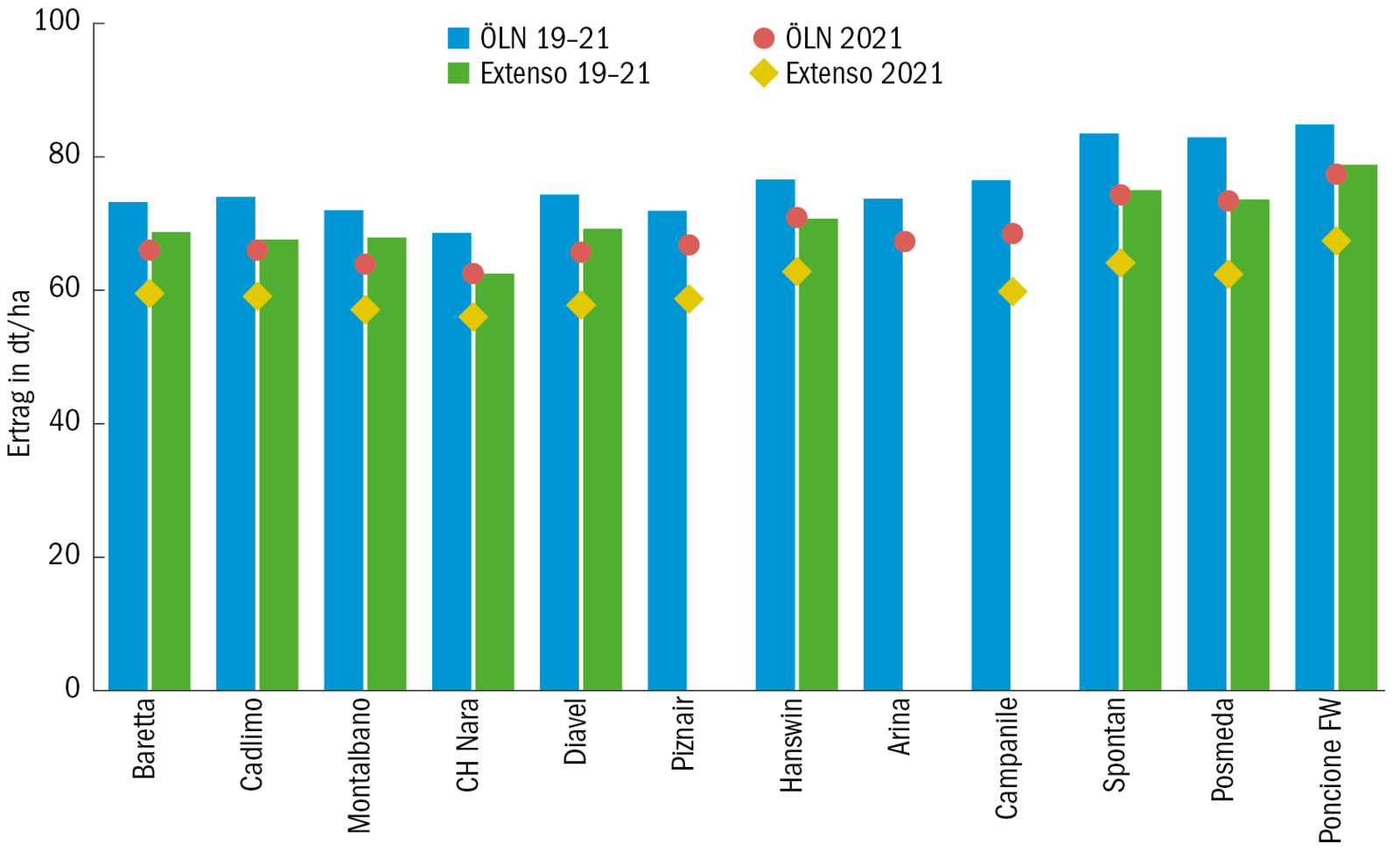 Baretta: hoher Extensoertrag; gute Resistenzen (ausser gegen Fusarien); gefährdet für Auswuchs.