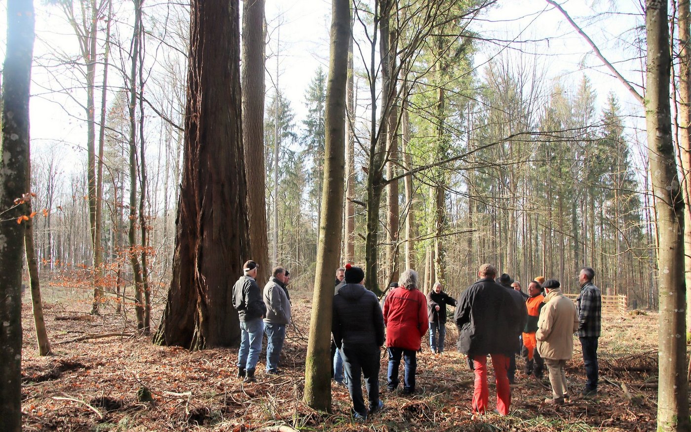 Förster Hansueli Langenegger führte die Gesellschaft einige 100 Meter in den Kohlfirst, dorthin, wo einst die Zivilgemeinde als öffentliche Waldbesitzerin eine kleine Baumschule betrieb. Hier steht als letzter Zeitzeuge ein mächtiger Mammutbaum. Der Exot weist auf Brusthöhe einen Durchmesser von über 1,5 Meter auf und ist wohl einer der dicksten Bäume im ganzen Kohlfirst. Seine Krone überragt alle anderen Bäume.