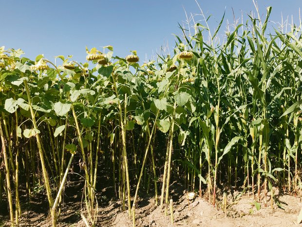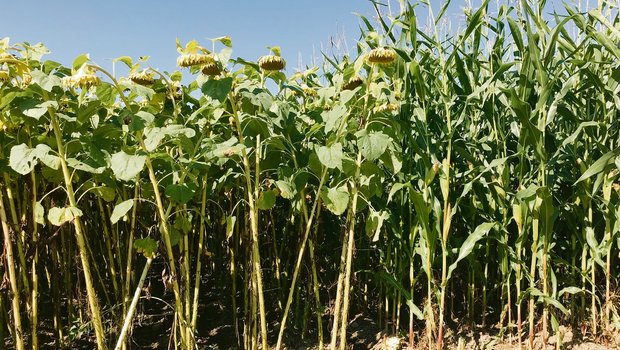 Beim pfluglosen Anbau wird auf die mechanische Bodenbearbeitung verzichtet, denn der Boden hat erste Priorität, wie Philipp Fehlmann sagt. Damit die Kulturpflanze nicht von Unkräutern überdeckt wird, setzt er auch auf Gründüngungen und Untersaaten. «Bei der Gründüngung säe ich eine Mischung von Sonnenblumen, Phazelia, und diversen Leguminosen wie Ackerbohnen und Erbsen auf das Feld. Die haben alle verschieden tiefen Wurzeln und erreichen verschiedene Bodenschichten», erklärt Fehlmann. Die Mischung bleibt von Herbst bis Frühling auf dem Feld, friert im Winter ab und bedeckt danach den Boden. Fehlmann sät Ende April den Mais direkt in das Feld, das noch Reste der abgefrorenen Gründüngung aufweist. Beim Mais setze er einmal gezielt ein Herbizid ein, bei der Kunstwiese mit den mehrjährigen Wurzeln brauche er Glyphosat, so Fehlmann.