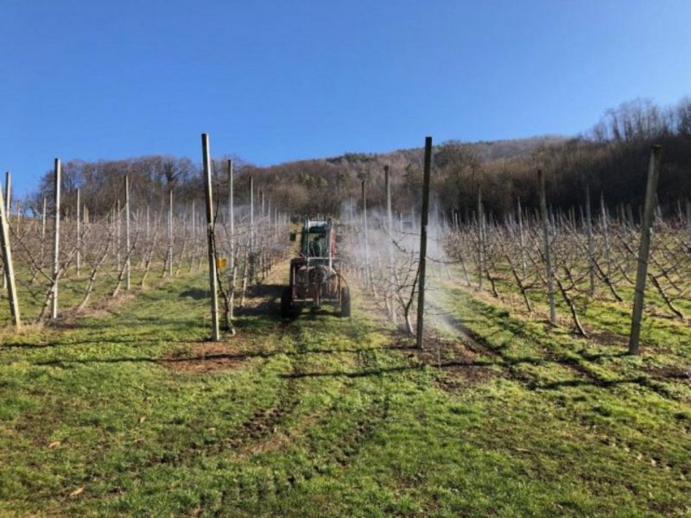 Auf ein anderes Naturproduktmittel setzt der Betrieb von Ralph Kellerhals im baselländischen Füllinsdorf: Dort kommt nicht Komposttee in den Spritztank, sondern eine Kalklösung. Der in Wasser gelöste sogenannte Fruchtkalk hat einen hohen PH-Wert von 12,6 und wird entweder per Boden- oder Blattapplikation ausgebracht. «Fruchtkalk läuft eigentlich unter der Düngemittelverordnung und liefert Nährstoffe wie Calcium oder Magnesium, er hat aber auch positive Eigenschaften im Pflanzenschutzmittelbereich», erklärt Ralph Kellerhals. Unter anderem Pilze, Bakterien und Viren würden einen so hohen PH-Wert schlecht oder gar nicht vertragen und Kalk wirke entsprechend desinfizierend.
