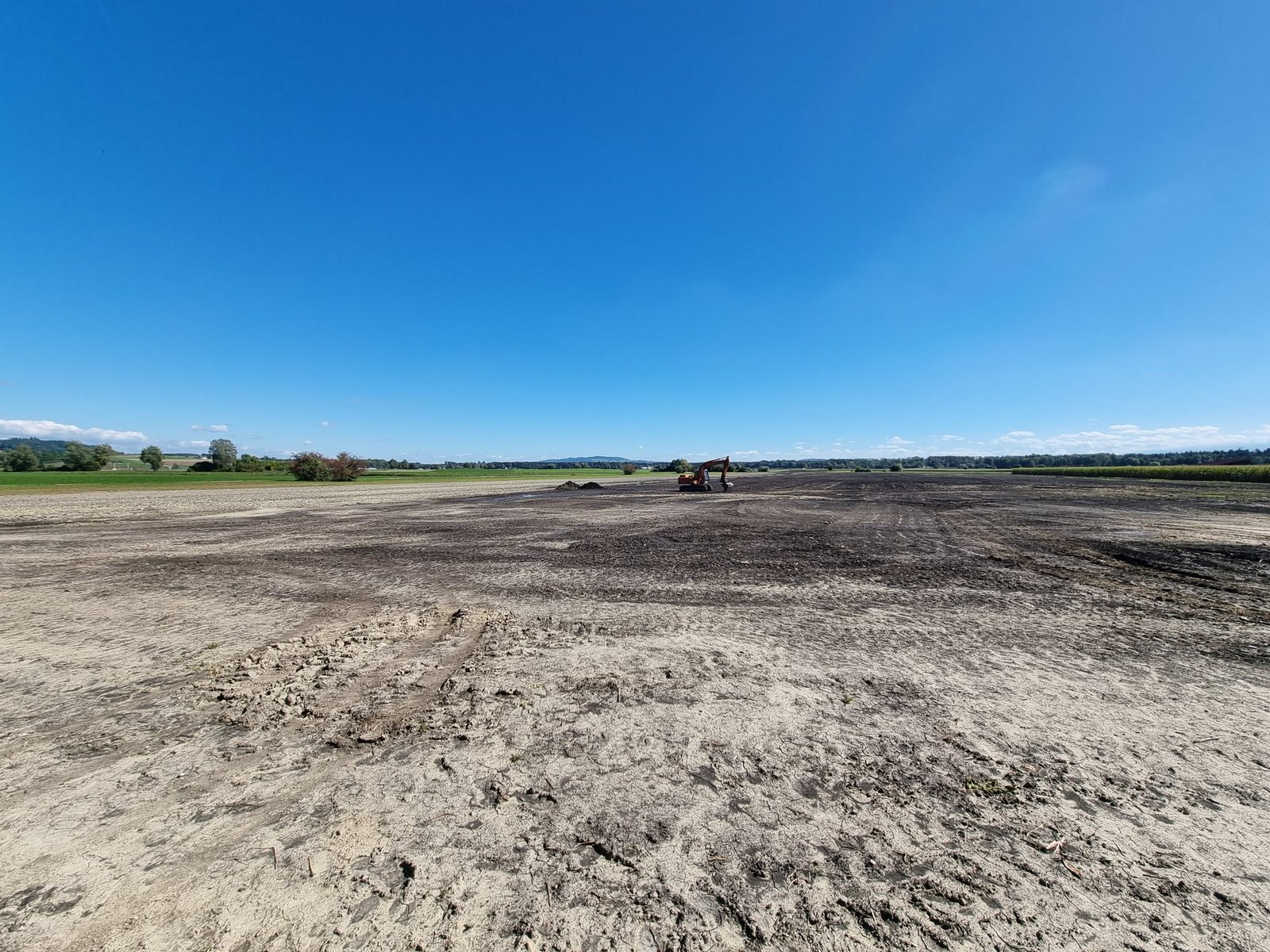 Auf dem Feld liegen bereits Haufen mit verschiedenem Aushub. Richtig gemischt sorgt dieser dafür, dass Michael Jenni auf dem Acker künftig wieder anbauen kann. 40 bis 50 Jahre Ertragssicherheit soll die Aufwertung bieten. Subventionen erhält Jenni keine. Geld gibt es für die Annahme des Aushubs. Dennoch schätzt Jenni die Kosten auf 2000 bis 3000 Franken pro Hektar. Hinzu kommt der Ertragsausfall. «Es ist ein grosser Eingriff», sagt Matthias Stettler. Bis der Boden wieder mit Würmern und anderen Lebewesen belebt ist, dauert es.[IMG 2]
