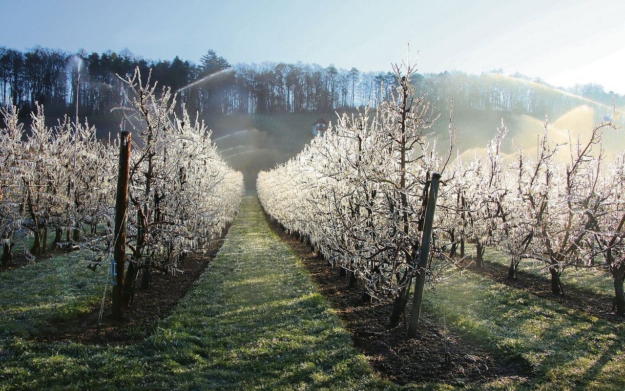 Die Schweiz erlebte über das erste Aprilwochenende die ersten beiden Frühlingsfrostnächte. So sank in der Nacht auf Sonntag das Thermometer in Hallau auf –2,1° C und in Aadorf oder in Kloten auf –1,2° C. Noch am Sonntagmorgen kurz vor 9 Uhr zeigte das Thermometer oberhalb der Mini-Kiwianlage nordwestlich von Truttikon –1° C an. Die Beregnung wirkt vorbeugend Infolge des eher milden und trockenen März ist die…