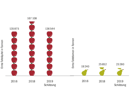 Jetzt in diesen Tagen werden die frühen, saftigen Äpfel und Birnen gepflückt und sie kommen auf Märkte und in die Läden. Gute bis sehr gute Ernte Die Ernten beim Kernobst sollen gut ausfallen, das geht aus der «Ernteschätzung 2019» des Schweizer Obstverbandes (SOV) hervor. Ja, sie sei sogar sehr gut, schätzt der SOV. Tafel-Äpfel: 136 500 Tonnen schwer soll die Apfelernte werden wenn der letzte Apfel gepflückt sein…
