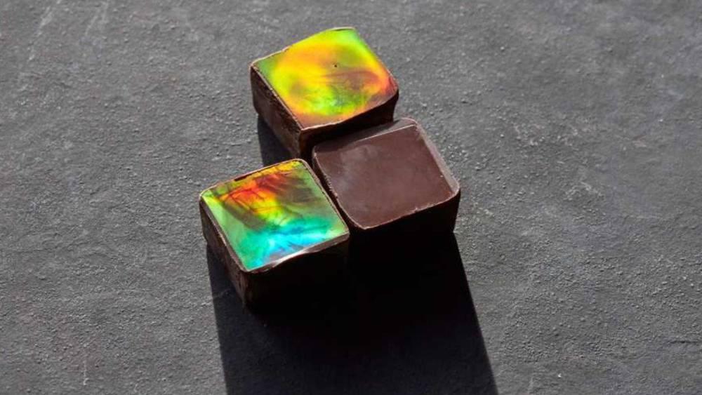 Der zündende Funke kommt von der Studentin Anita Zingg, die im Rahmen eines Masterprojekts in Materialwissenschaften schimmernde Pralinen entwickelt. Die Gruppe bearbeitet das weiter bis zum Leuchten, zwei Oberflächenspezialisten der Fachhochschule Nordwestschweiz, Per Magnus Kristiansen und Jerome Werner, entwickeln eine Form, um mehr als eine Praline aufs Mal mit der farbgebenden Struktur zu prägen.