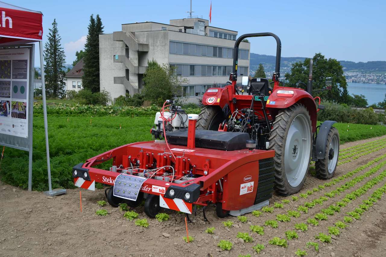 Der erfolgreiche Einsatz des Pflanzenschutzroboters Steketee wurde bereits früher vermeldet. Hans Möhri erklärte die Funktionsweise, bei der eine Kamera die Kulturpflanze erfasst und das Hackwerkzeug entsprechend das Unkraut rundherum hackt. Gleichzeitig kann gezielt Pflanzenschutzmittel ausgebracht werden, wodurch sich der Verbrauch um durchschnittlich 75 Prozent reduziere. Die Kamera leistet Erstaunliches, wie Möhri weiter ausführte; da Zwiebeln dunkler grün sind als beispielsweise Franzosenkraut, könne der Roboter in einem überwucherten Zwiebelfeld hacken.