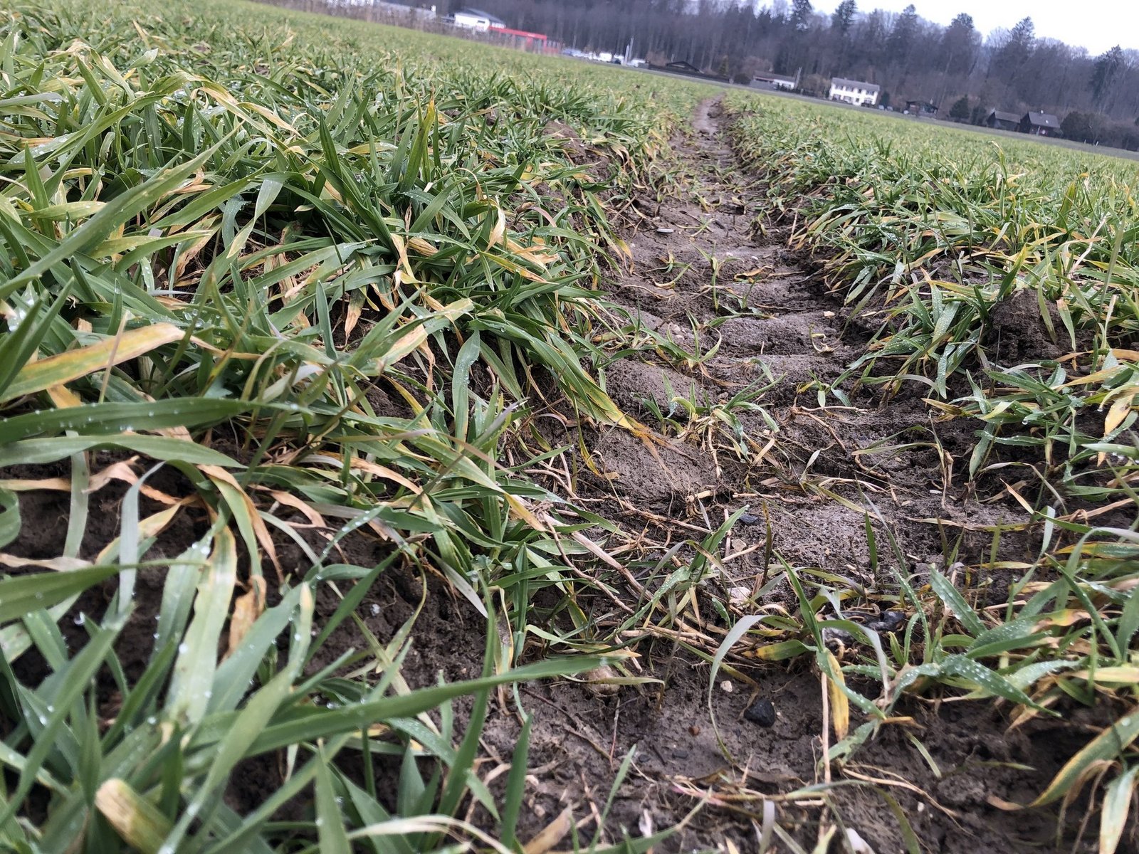 Gerste ist für ihre gute Bestockung bekannt und wird den unvorteilhaften Start daher voraussichtlich kompensieren können. Weizen ist da nicht ganz so flexibel und ausserdem weniger gut darin, allfälliges Unkraut zu verdrängen. «Die mechanische Unkrautbekämpfung war in diesem Jahr bisher erneut kaum möglich», bemerkt Anna Brugger. Von guten Bedingungen fürs Striegeln – mit dem sich auch einem Sauerstoffmangel im Boden entgegenwirken liesse – ist man momentan weit entfernt.