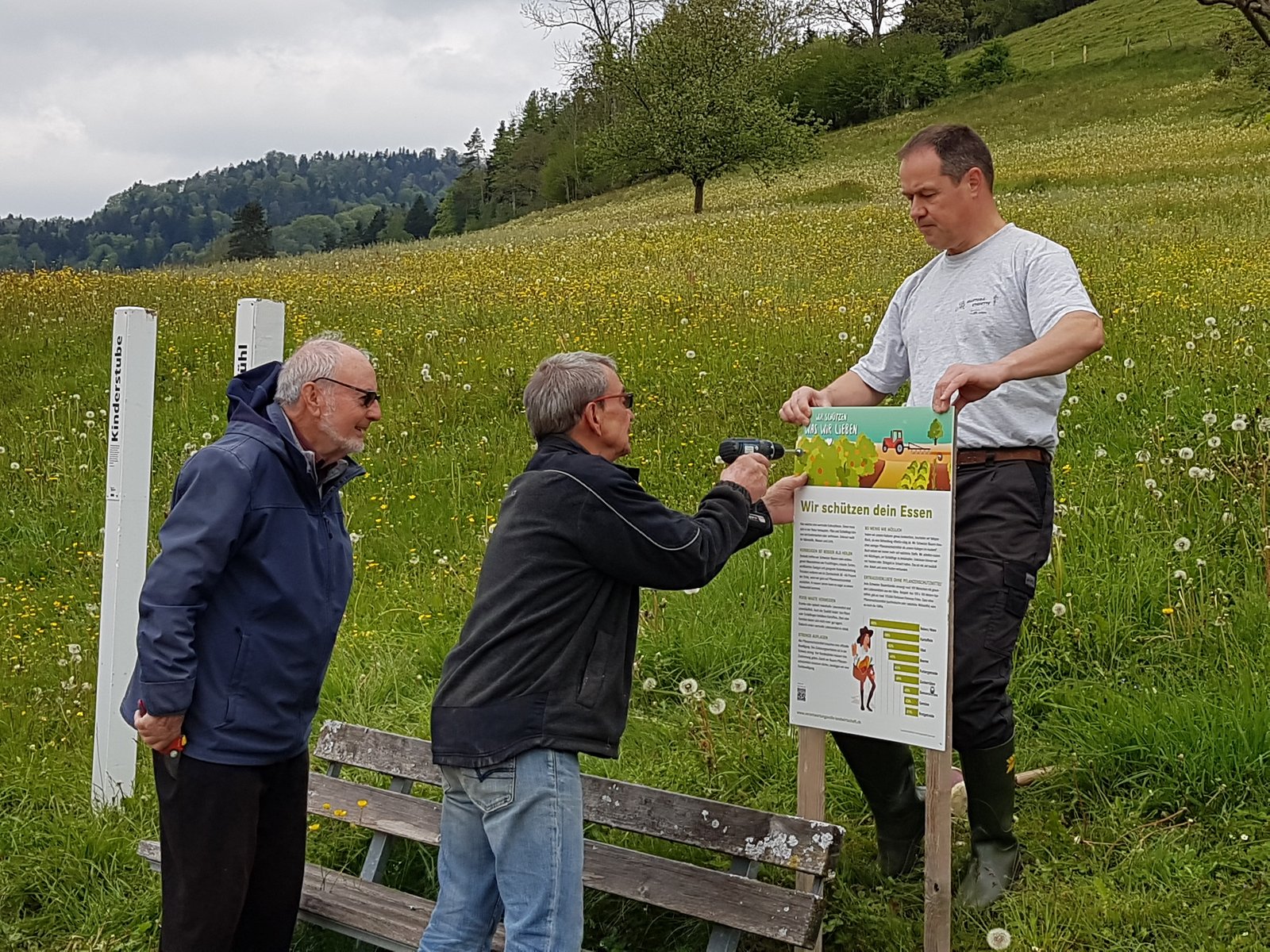 Der Verband stellt verschiedene Informationstafeln zu den Themen Pflanzenschutz, Fütterung und Tierhaltung zur Verfügung. Diese kann man auf dem Betrieb, mim Stall oder auf dem Feld aufstellen. Ebenfalls gibt es Infoflyer zu den Themen, welche die Bäuerinnen und Bauern verteilen können.
