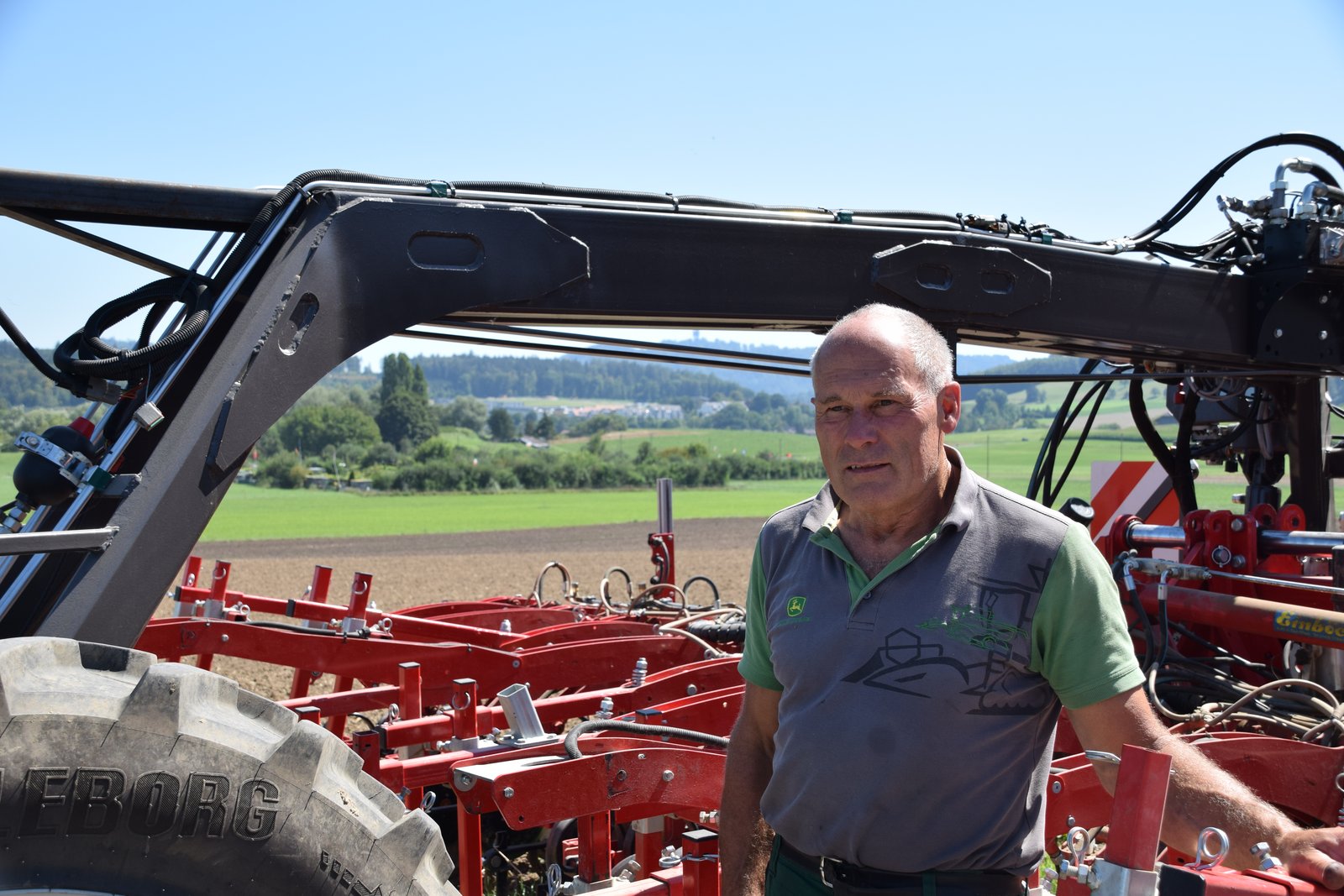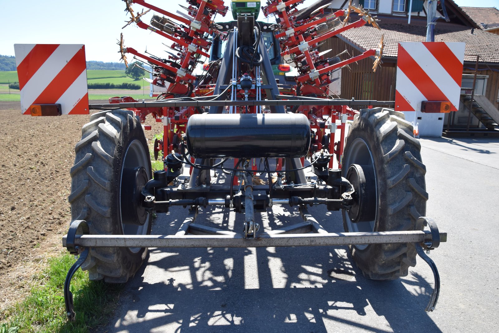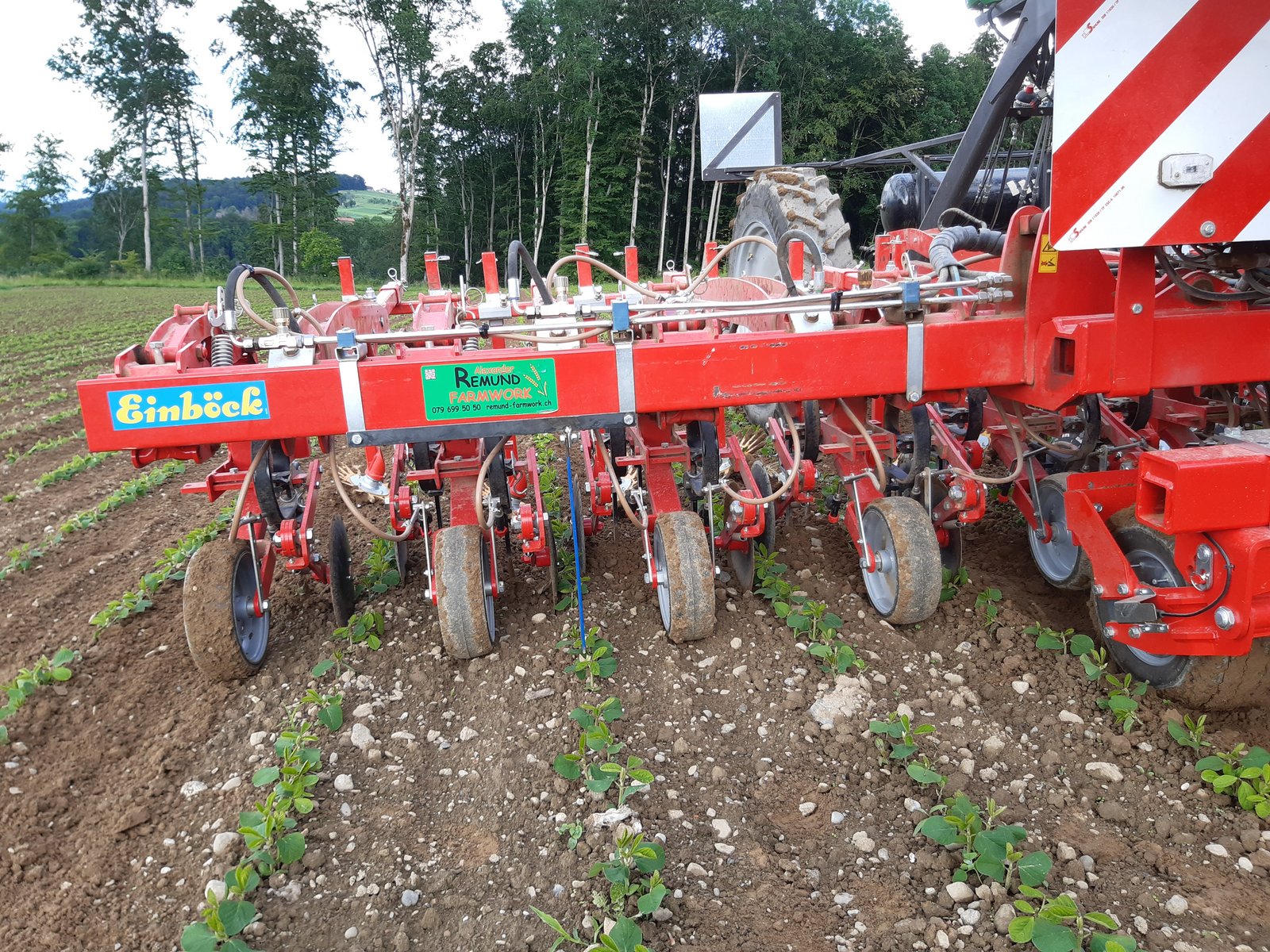 [IMG 13] Wie ein Koloss steht ein glänzender John Deere 6120M auf dem Vorplatz des Lohnunternehmens Schneeberger und Berger in Oberbottigen BE. Danebenstehend trifft man auf Ruedi Emch, der Tüftler hinter dem angehängten Trägerwerk. Schwarzes Maschinenfett verziert die von harter Arbeit gezeichneten Hände des Landwirts, der zu einem häufigen Problem eine Lösung gefunden hat. Präzises Hacken in Hanglagen Das Hacken…