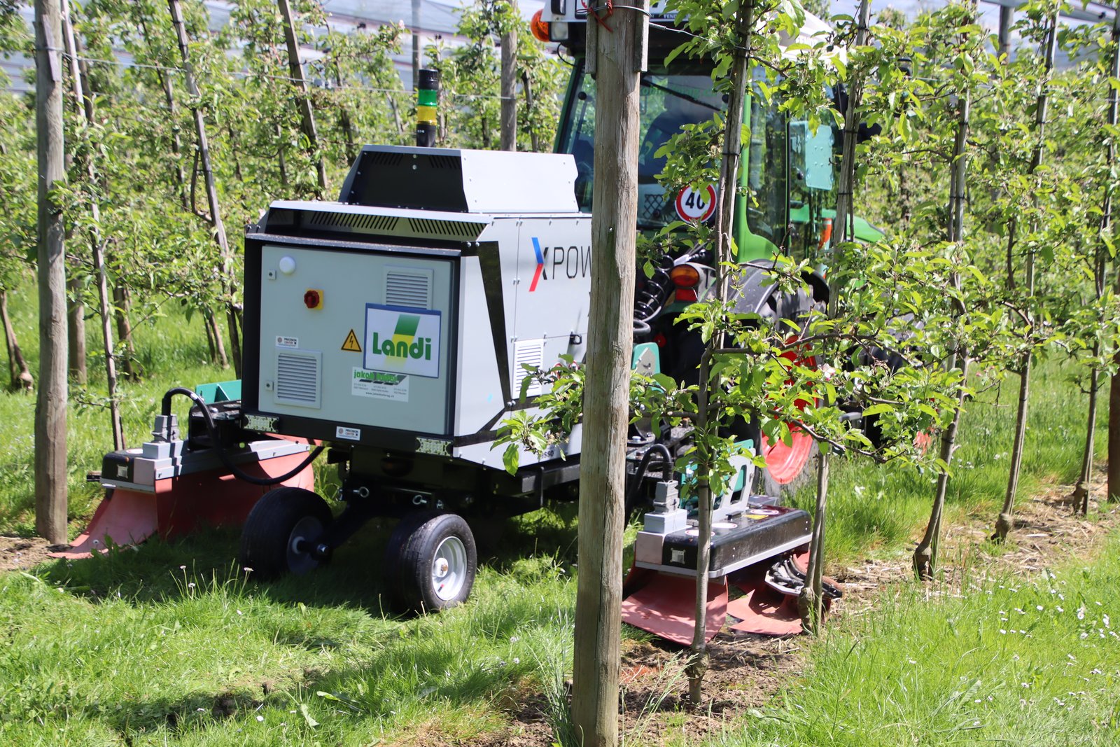 Am autonom fahrenden Robotti können herkömmliche Anbaugeräte angehängt werden