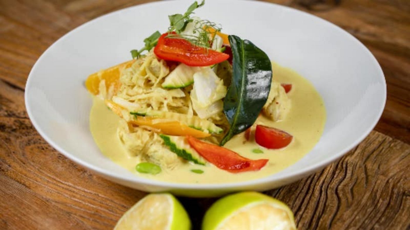 Fügen Sie alle Gewürze hinzu. Dann die Kokosmilch zum Verfeinern dazugeben. Geben Sie gekochtes Sauerkraut dazu und lassen Sie es auf kleiner Stufe ca. 15 min köcheln.