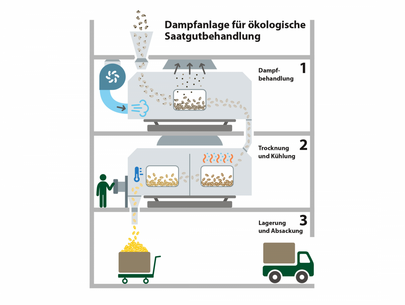 Viele konventionelle Wirkstoffe zur Saatgutbeizung, die Schutz vor Krankheiten für die keimenden Pflanzen versprechen, werden zurzeit überprüft. Gleichzeitig ist die Reduktion chemisch-synthetischer Pflanzenschutzmittel ein politisches Anliegen und der Biomarkt wächst. Das sind gute Voraussetzungen für «ThemoSem», die Saatgutbehandlung mit heissem Dampf, die Ende August im bernischen Lyssach startet.