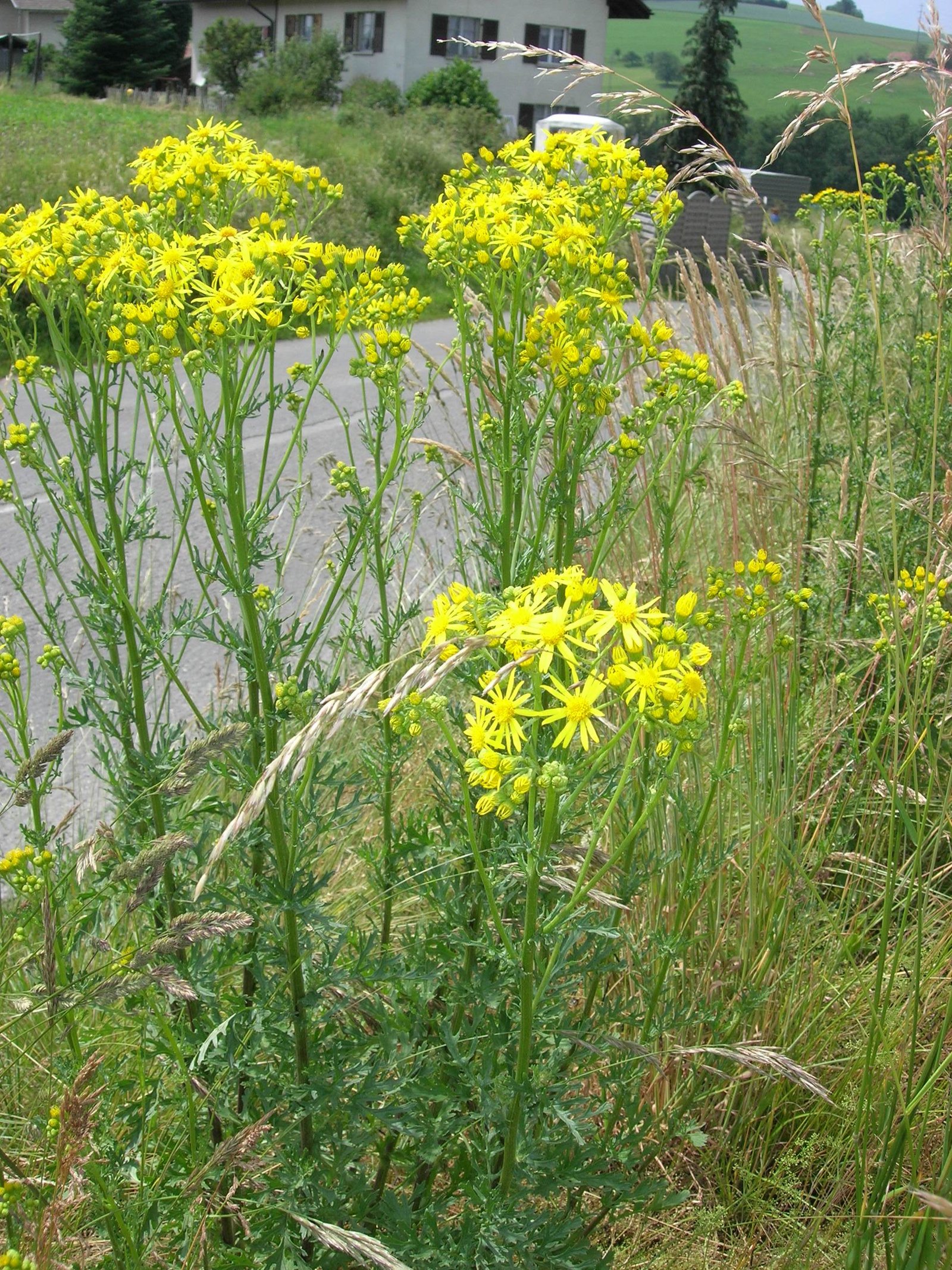 Im Moment blüht das giftige Jakobskreuzkraut, welches mit dem Johanniskraut verwechselt werden kann. Das Jakobskreuzkraut ist aber ein Korbblütler, wie die Margerite und hat gefiederte Blätter, während das Johanniskraut nur fünf Blütenblätter und ganze, ovale Blätter besitzt. Beim Jakobskreuzkraut ist die ganze Pflanze giftig, auch getrocknet. [IMG 2] Um die Verbreitung zu bremsen, ist es wichtig, dass sie vor dem…