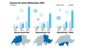 Dieses Jahr verspricht das Weihnachtstauwetter den vollen Umfang: Mit dem Westwindgürtel erreicht nicht nur milde Luft die Alpen, sie kommt auch in Kombination mit viel Wind und viel Feuchtigkeit daher. Am Weihnachtstag lässt zwar die Zufuhr von feuchter Luft nach, dafür steigt die Temperatur weiter an und die Nullgradgrenze klettert auf über 3000 Meter und der Wind bleibt weiterhin kräftig. Diese intensive Weihnachtstauwetter-Phase geht voraussichtlich am 27. Dezember mit einem markanten Kaltluftvorstoss zu Ende. Nach den milden und nassen Weihnachtstagen könnte dann in der Altjahrswoche plötzlich wieder Schnee bis unter 1000 Meter zum Thema werden.