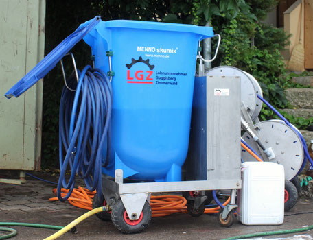 Eine Verschäumungsanlage wie sie Samuel Guggisberg hat, ist wohl einzigartig in der Schweiz. Aber das Lohnunternehmen Guggisberg stellt auch eine kleinere, handliche Skumixanlagen zum Ausmieten zur Verfügung. Auch Pius Fleischmann von Omya hat so eine Anlage, die man ebenfalls ausmieten könne, sagte Adrian Imhof, ebenfalls von Omya. [IMG 5]