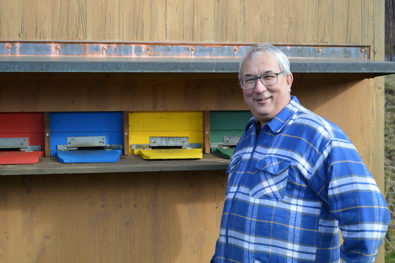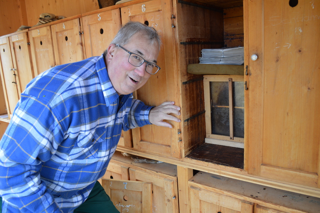 «Während ich die Ausbildung zum Imker machte, hat sich meine Haltung zum Einsatz von Pflanzenschutzmitteln stark verändert», erzählt Beat König der vor seinem klassischen Bienenhaus steht und zeigt, wo die Bienen, sobald es über 15 Grad wird, ausfliegen. Verschiedene farbige Luken in einer Reihe. Gemächlich geht er um das Häuschen herum, um das Innere zu präsentieren. Im Bienenhaus ist es kühl, eine holzige Note…
