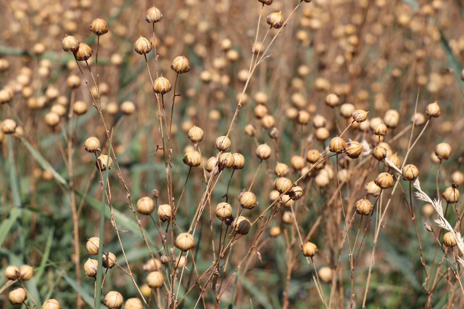 Das Ernteverfahren dagegen ist herausfordernd, weil das Kraut sehr zäh und faserig ist. Die Kapseln direkt zu dreschen ginge grundsätzlich. Jedoch zeigt die Erfahrung, dass sich die Stängel in der Haspel verhaken.