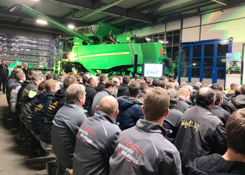 Anschliessend an das Referat stellte Simon Krähenbühl, Produktmanager für Grosserntemaschinen bei der Robert Aebi Landtechnik AG, den John Deere T560 vor.