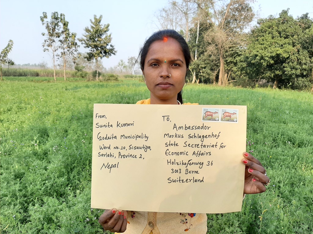 Um auf das drohende Saatgutmonopol aufmerksam zu machen, haben rund 90 malaysische Bäuerinnen und Bauern Briefe ans Staatssekratariat für Wirtschaft Seco geschrieben, das sich mit der Aushandlung des Freihandelsabkommens beschäftigt. Ihre Forderung: Der Sortenschutz soll aus dem Abkommen ausgenommen werden.