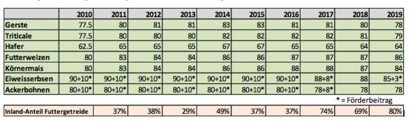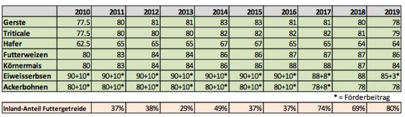 Die Kundschaft teile der Willi Grüninger AG seit Jahren mit, dass die Mischfutterpreise nicht mehr steigen sollen, schreibt die Firma. Insbesondere der Anteil der Inlandproduktion, schreibt der Mischfutter-Hersteller, sei preistreibend. Druck bei Biogerste und Biotriticale Hatte man noch vor fünf Jahren 30 bis 40 Prozent Inlandanteil, so sei man ab 2017 auf einem Inlandanteil von 70 Prozent und mehr geklettert. Die…