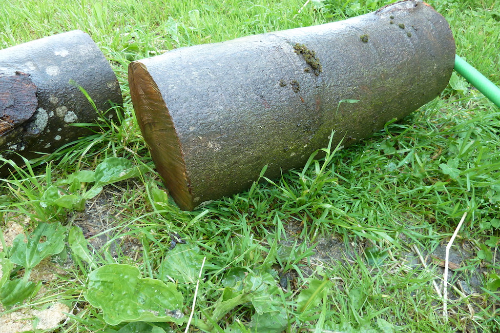 Das Holz muss relativ frisch sein und wird vor dem Beimpfen mit dem Gartenschlauch gewässert. (Bild jsc)