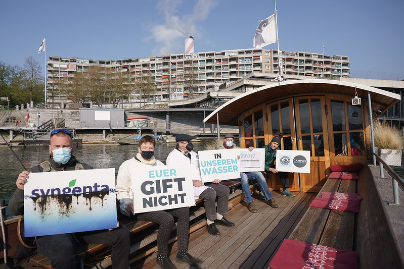 Mit der Petition fordern die Initianten der Pestizidverbots-Initiative Syngenta zum Rückzug ihrer Beschwerde auf. Mit der kommenden Abstimmung habe die Bevölkerung ausserdem die Möglichkeit, der Agrochemie mit einem Ja den Riegel zu schieben.