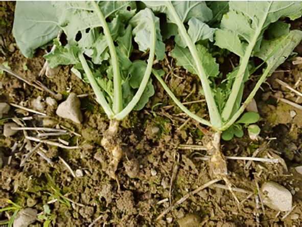 Das Wetter im Moment ist optimal für die Entwicklung der Kohlhernie. Diese braucht nämlich einen feuchten Boden und hohe Temperaturen, damit die Sporen die Rapswurzeln befallen können. Ein Befall zeigt sich durch die typischen Welkeerscheinungen. Reisst man die Pflanzen aus, sieht man an den Wurzeln Verdickungen und knollenartige Gebilde. Diese Tumore verhindern die Bildung von Pfahl- und Seitenwurzeln, weshalb in der Pflanze ein akuter Wassermangel entsteht. Eine direkte Bekämpfung ist nicht möglich.