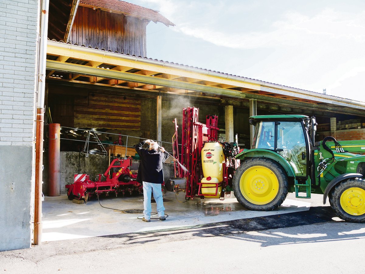 Ein weiterer Kontrollpunkt betrifft den Abstellplatz der Spritze. Feldspritzen müssen bei Niederschlag unter einem Dach stehen, alternativ kann eine rasch installierbare Plane verwendet werden. Als dritter Punkt darf keine erodierte Erde und Wasser aus dem Feld in Schächte gelangen. Der vierte Punkt ist: Jeder Betrieb mit einem Spritz- oder Sprühgerät muss Zugang zu einer mobilen oder fixen Einrichtung haben, auf der er die Geräte befüllen und reinigen kann. In keinem Fall darf Wasser, das Pflanzenschutzmittel enthält in Oberflächengewässer oder die ARA gelangen. Befüllt oder gewaschen wird auf einem dichten Platz, das anfallende Wasser kann in eine Güllegrube oder in ein dafür vorgesehenes Reinigungssystem geleitet werden (z.b. Biobac, Phytobac usw.).