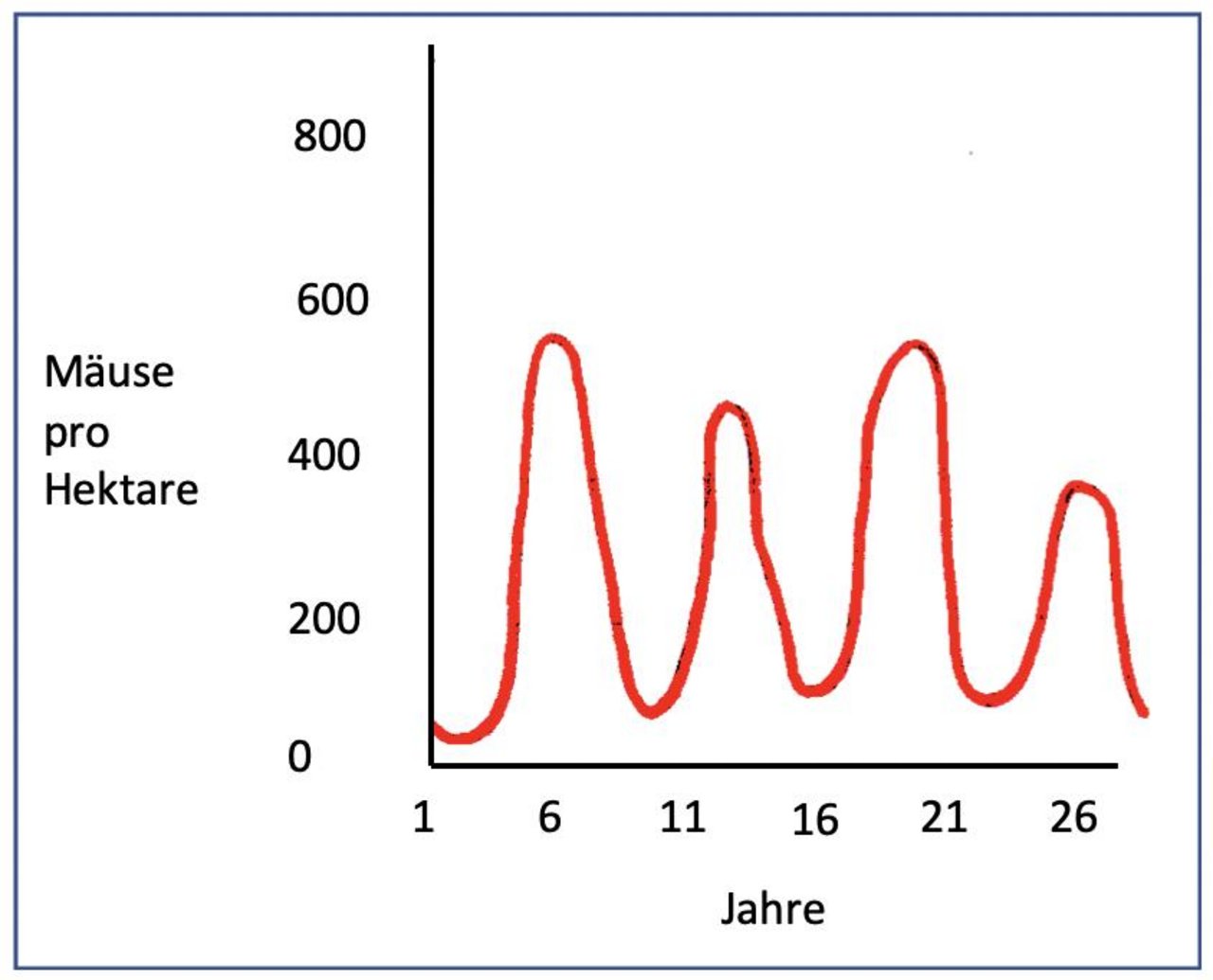 Schermaus-Populationen entwickeln sich in für sie geeigneten Gebieten (solchen mit einem hohen Anteil an Futterbauflächen) laut Cornel Stutz von Agroscope in Zyklen. Je nach Umgebung gibt es zwei mögliche Verläufe:
