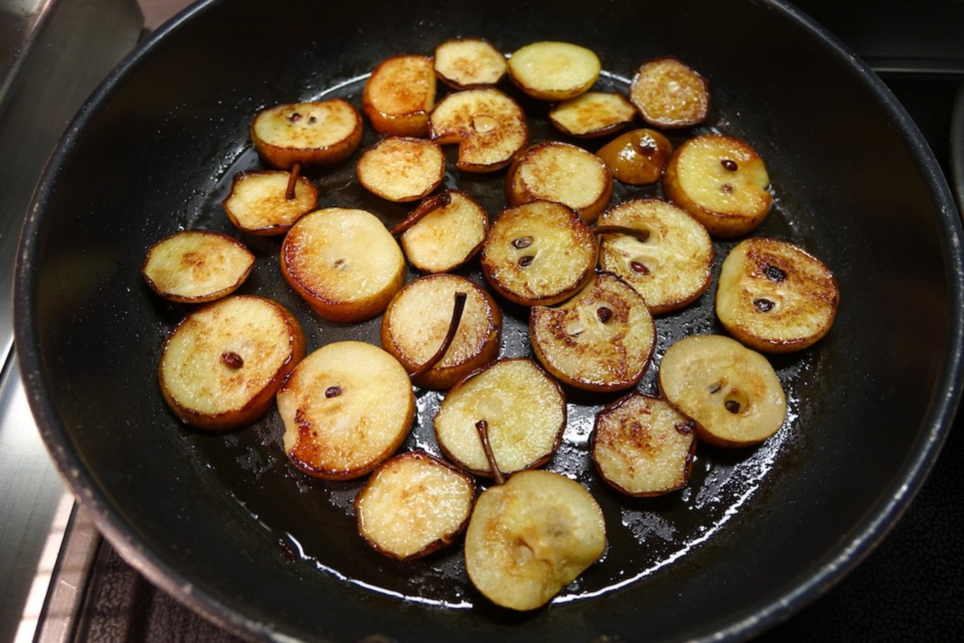 Die leckere Seite der Schweizer Bratbirne zeigt sich erst, wenn sie gebraten, gebacken oder gegart wird. Die Birnensorten hat ein kräftiges Aroma und eine feste aber feine Textur. Die Sorte hat Würze und entwickelt beim Kochen eine typische Karamellnote.