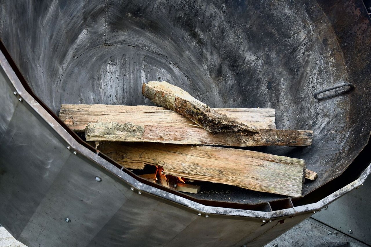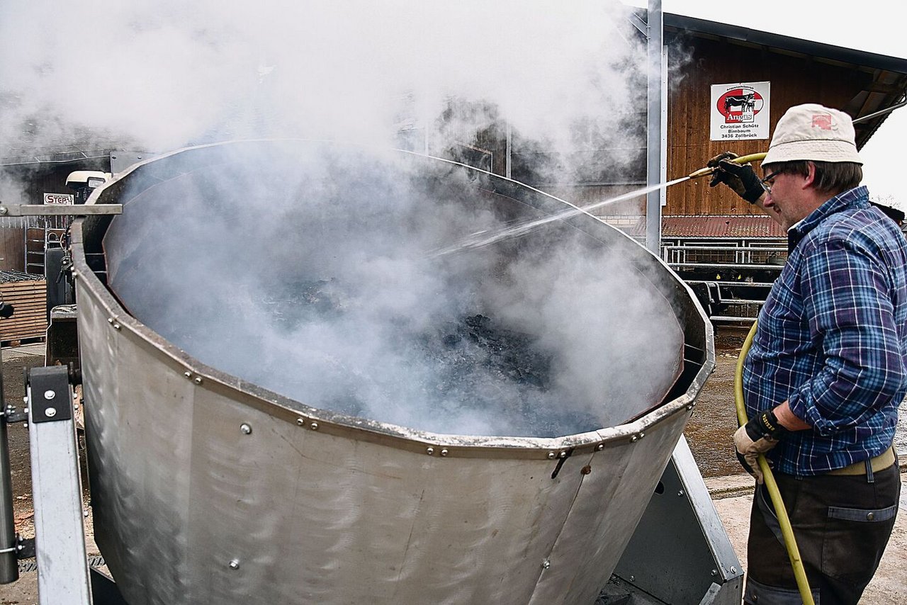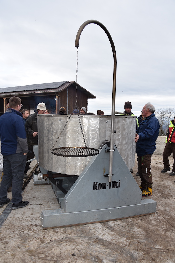 Rund 20 Leute haben sich auf einem zugigen Hügel über Zollbrück BE um eine grosse Feuerschale versammelt. Und obwohl an einem schwenkbaren Arm ein Grillrost hängt, unterscheidet sich der Vorgang in der Schale klar von einem Lagerfeuer: Im Kon-Tiki läuft eine Pyrolyse. Kohle statt Asche «Wenn wir Holz hoch erhitzen, beginnt es auszugasen. Das heisst, die flüchtigeren Kohlestoffverbindungen darin treten aus und…
