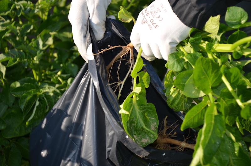 • Einzelpflanzenbehandlungen mit Handschuhen, Schutzanzug, Visier, Stiefel, evtl. Kopfbedeckung.