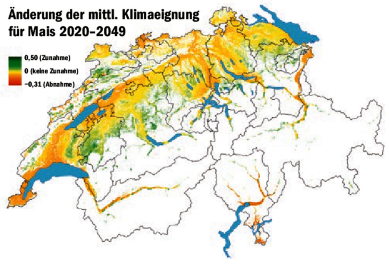 Fährt man dieser Tage durchs Mittelland, sieht man vielerorts Mais wachsen, je nach Saatzeitpunkt in unterschiedlicher Grösse. Früh gesäte Sorten könnten in gewissen Regionen ein Weg sein, um in Zukunft mit zunehmend trockenen und heissen Sommern gute Maiserträge einzufahren. Entscheidend wird aber auch die Reifung. «Spätreifere Sorten sind eine erfolgversprechende Strategie, wenn es wärmer wird, aber keine…