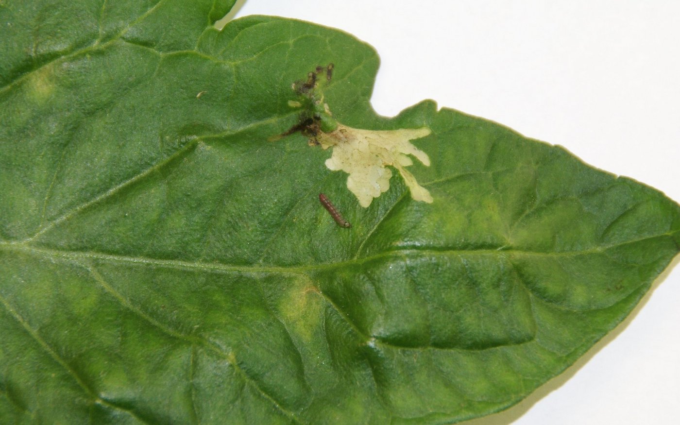 In einzelnen betroffenen Betrieben wurden zudem Tomatenminiermotten (Tuta absoluta) in den Fallen gefangen, die derzeit auf ein mittleres bis hohes Befallsrisiko hinweisen. Achten Sie bei den Kulturkontrollen vermehrt auf die Platzminen des Schädlings, die deutlich breiter und gröber sind als diejenigen der Liriomyza-Minierfliegen.