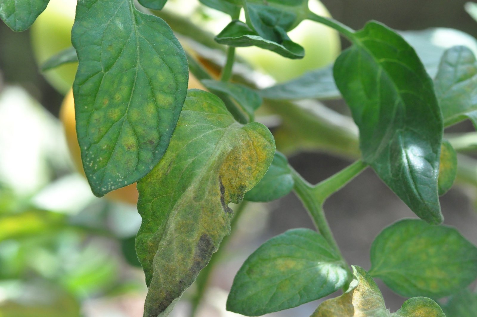 Die Ränder der betroffenen Blätter rollen sich bei einem Befall vermehrt ein. Nicht nur betroffenes Blattgewebe, sondern auch befallene Stängel und Früchte verkorken und erhalten so ein rostiges bis bronzefarbiges Aussehen. Im weiteren Verlauf verdorren die Blätter und die Pflanzen sterben ab.