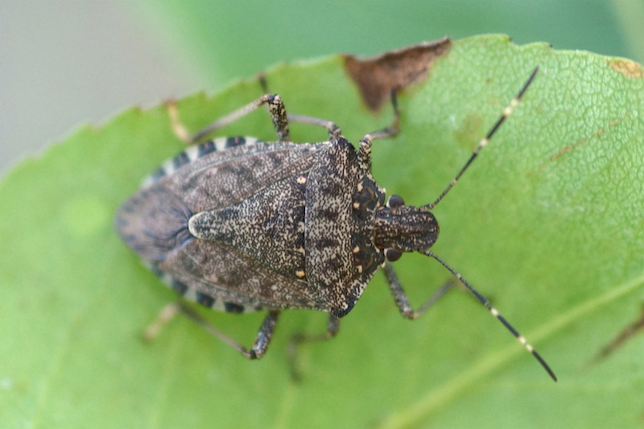 Die Marmorierte Baumwanze ist nicht wählerisch und befällt diverse Obst- und Waldbäume, aber auch Gemüse, Soja und Mais. Alle Entwicklungsstadien der Wanze können Schäden verursachen. Typisch sind bei Obst Dellen und eingesunkene Stellen, Warzen beim Gemüse und welke Blätter. Die Schäden sind schwer eindeutig zuzuordnen, da andere Krankheiten und Schädlinge ähnliche verursachen.