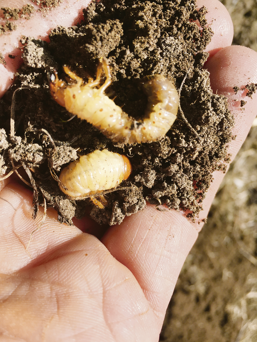 Die Schäden seien 2019 im Urnerland besonders hoch, bestätigt Daniel Furrer vom Urner Amt für Landwirtschaft, der die Begehung organisierte. Der Entwicklungszyklus des Käfers umfasst drei Jahre, das letzte sogenannte Flugjahr war 2018. Die Schäden sind vor allem im Jahr nach dem Flug besonders ausgeprägt. Neu ist, dass sich der Käfer auch in höheren Lagen wohlzufühlen scheint. Im Kanton Uri wurden 2019 auf einer Fläche vor rund 120 ha Pilzgerste ausgebracht. Die Pilzsporen infizieren die Engerlinge und schützen damit den Boden. Dieses Jahr kam es zu Verzögerungen beim Ausbringen und auch sonst scheinen die Bedingungen seit der Eiablage im Frühjahr 2018 für die Engerlinge besonders vorteilhaft gewesen zu sein, bilanziert Futterbaufachmann Furrer. Auf eine normale Bewirtschaftung ist auf den befallenen Flächen in Gurtnellen nicht zu denken. «Der erste Schnitt war noch einigermassen gut», sagt Christian Walker, danach kam höchstens etwas «Chrut». Einige haben es dann mit Übersaaten probiert. Der Sommer war aber trocken und noch immer sind zu viele Engerlinge im Boden. Rund 400 pro m2 hat man hier bei Probegrabungen im Frühjahr gezählt. Die Kosten für die Kampagne (spezielles Saatgut, Organisation und die Qualitätskontrolle) übernimmt der Kanton. Aufwände für das Einbringen des Saatguts, Ein- und Übersaaten und der Ertragsausfall bleiben bei den Landwirten hängen.