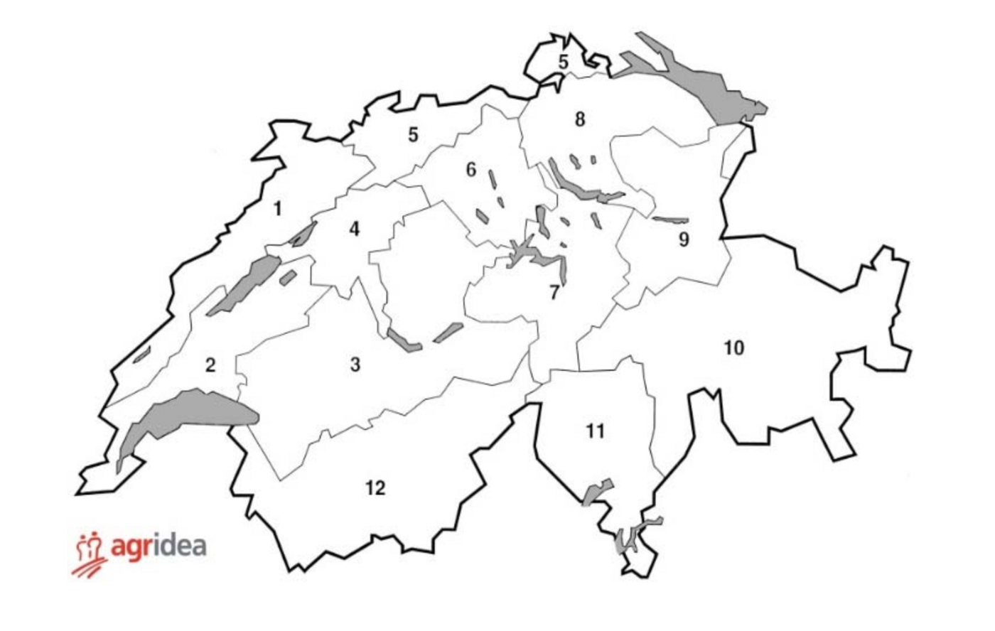 Die intensiven Futterbauregionen der Ostschweiz (Regionen 8 und 9) stechen dieses Jahr wiederum mit guten Energie-, als auch Protein- und Rohfasergehalten heraus. Einige Regionen hatten Schwierigkeiten, den Rohaschegehalt und somit die Futterverschmutzung unter 100 g / kg TS zu halten. Die Lagen über 1000 m im Wallis hatten auch 2022 Mühe, Energiegehalte über 5.2 MJ NEL pro kg TS zu erreichen. Die Werte aus der Region 5 sind nicht vergleichbar, da lediglich 5 Proben zur Verfügung standen.