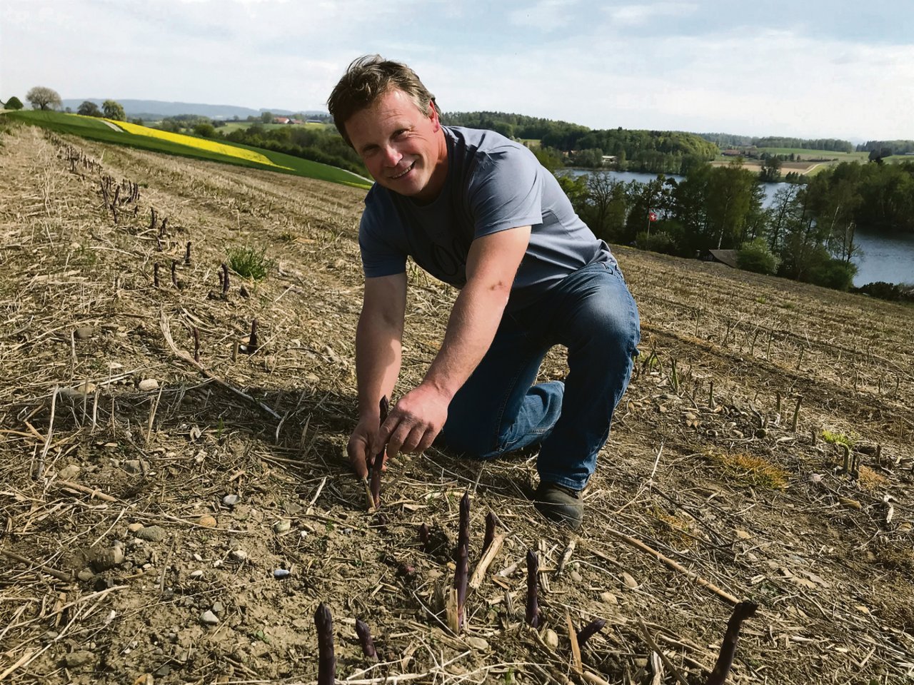 Seit Tagen ist es sonniges Wetter, die Temperaturen steigen auf beinahe sommerliche Höhen. Auf dem Feld über dem Hüttwilersee recken die Spargeln ihre Köpfe täglich ein paar Zentimeter weiter aus der Erde. Das Besondere daran: Neben den bekannten grünen wachsen hier überwiegend violette Spargeln. Dabei handelt es sich um die Sorte mit dem bezeichnenden Namen «Violetta», die auch roh bekömmlich ist. Anbau wie…