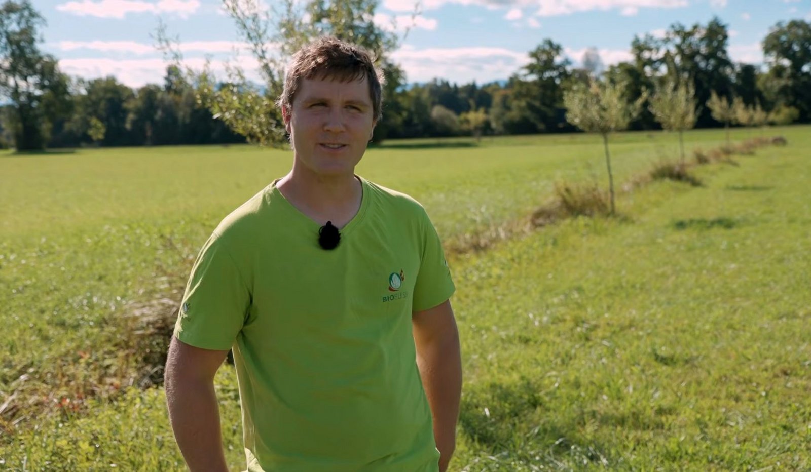 «Wichtig ist, dass man sicher einmal offen ist und zuhört», findet Marco Imfeld. Der Biobauer aus Sursee LU hält Milchkühe und betreibt einen Selbsterntegarten mit Abosystem. Auf seinem Land hat Imfeld schon seit Längerem einen Graben, um Wasser rasch von feuchten Flächen abführen zu können. Der Wassergraben sei aber verlandet, erklärt der Luzerner im Video. Die Instandsetzung nutze er, um den Gewässerraum aufzuwerten. So verläuft der Wassergraben nun statt durch offenes Wiesland entlang von Kopfweiden und Kleinstrukturen wie Steinhaufen. Anstelle einer Dauerwiese hat Marco Imfeld einen vier Meter breiten Streifen extensive Weide angemeldet.
