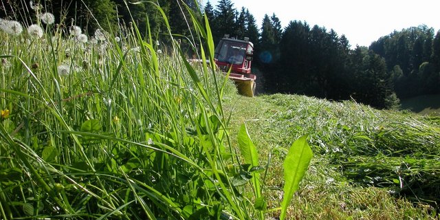 «Wenn gewisse Pflanzen blühen, vor allem in dieser Hochstaudenflur, und wie es summt von den Bienen und anderen Insekten – das ist schon interessant», berichtet Kilian Wetterwald. Er hält in Geuensee LU Mutterkühe und hat im Gewässerraum auf seinem Land eine neue extensive Wiese mit Hochstaudenflur an den feuchten Rändern angelegt. Die Hochstaudenflur mit typischen Uferpflanzen wie Mädesüss muss spät gemäht werden, wofür Wetterwald den Messerbalken einsetzt.