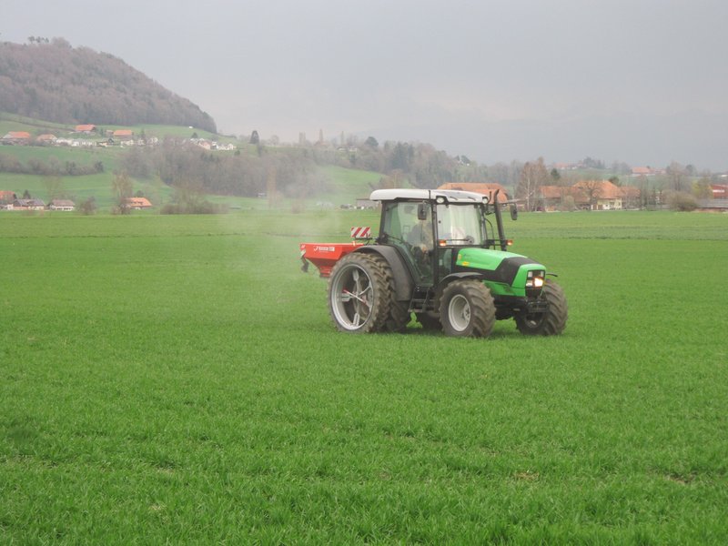 Wie in anderen europäischen Ländern werde auch in der Schweiz nach wie vor zu viel Sticktstoffdünger ausgebracht, so dass die gedüngten Kulturpflanzen nicht die ganze Menge des Nährstoffs aufnehmen können. So belief sich der Stickstoffüberschuss auf Landwirtschaftsflächen in der Schweiz laut dem Bundesamt für Statistik in den letzten zehn Jahren durchschnittlich auf 100'000 Tonnen jährlich. Es ist keine abnehmende Tendenz zu erkennen.