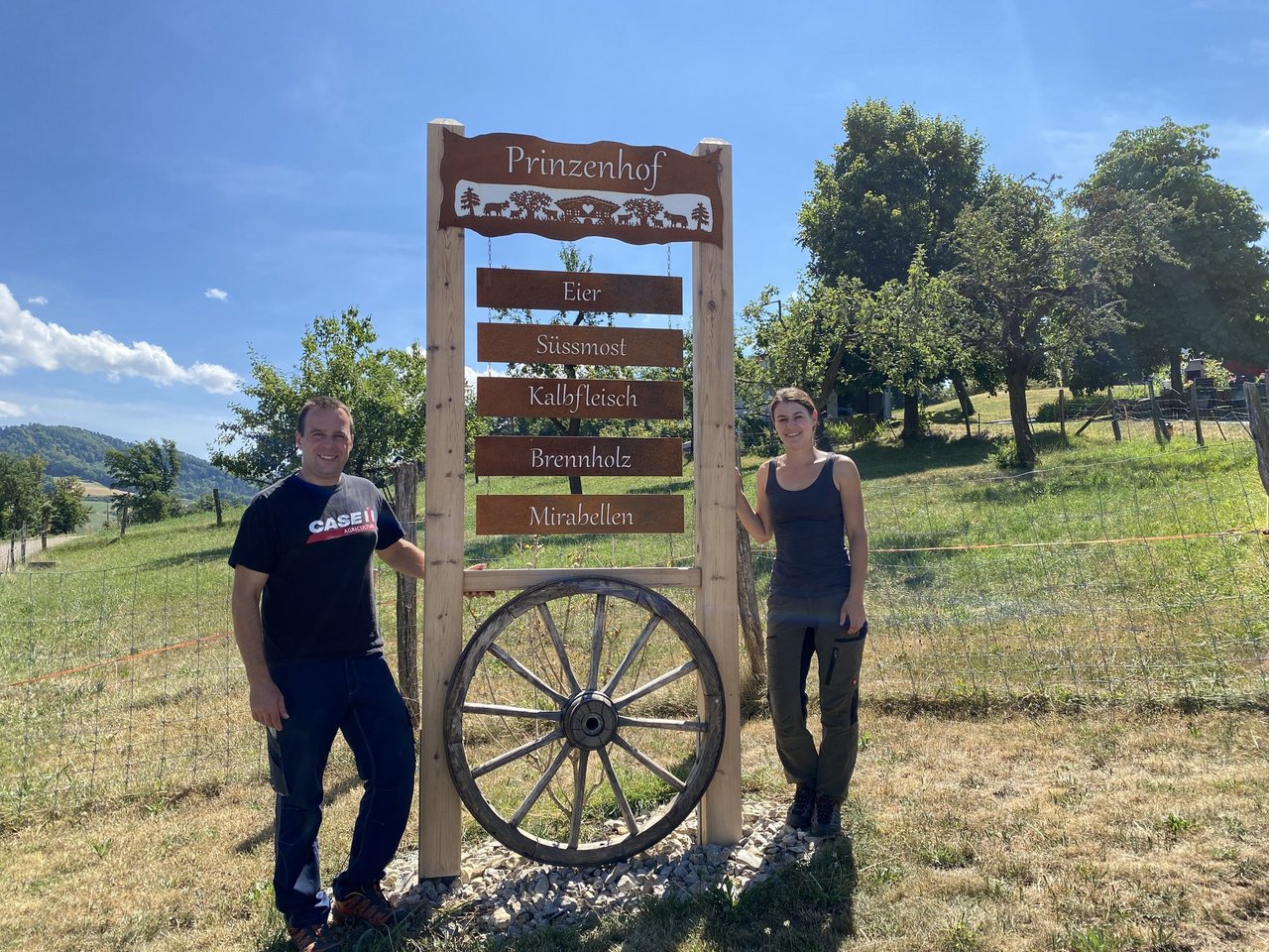 Mit tageweise drei bis sieben Leuten dauert die Ernte bei Schwobs 10 bis 14 Tage. Die Mirabellen werden an die regionale Landi geliefert, gehen aber auch in die Gastronomie: «Der Wirt der Dorfbeiz bereitet ein Chutney zu», erklärt Myriam Schwob. Dieser Absatz sei ein Resultat lebindigen Dorflebens, da man einander um den Lampenberg noch im Ausgang oder bei Vereinsaktivitäten treffe. Auch Eier und Kalbfleisch vom Prinzenhof kommen so via Restaurant auf den Teller der weiteren Nachbarschaft. Die Direktvermarktung via Hofladen beschränkt sich wegen der wenig günstigen Lage auf einen Kühlschrank mit Eiern.