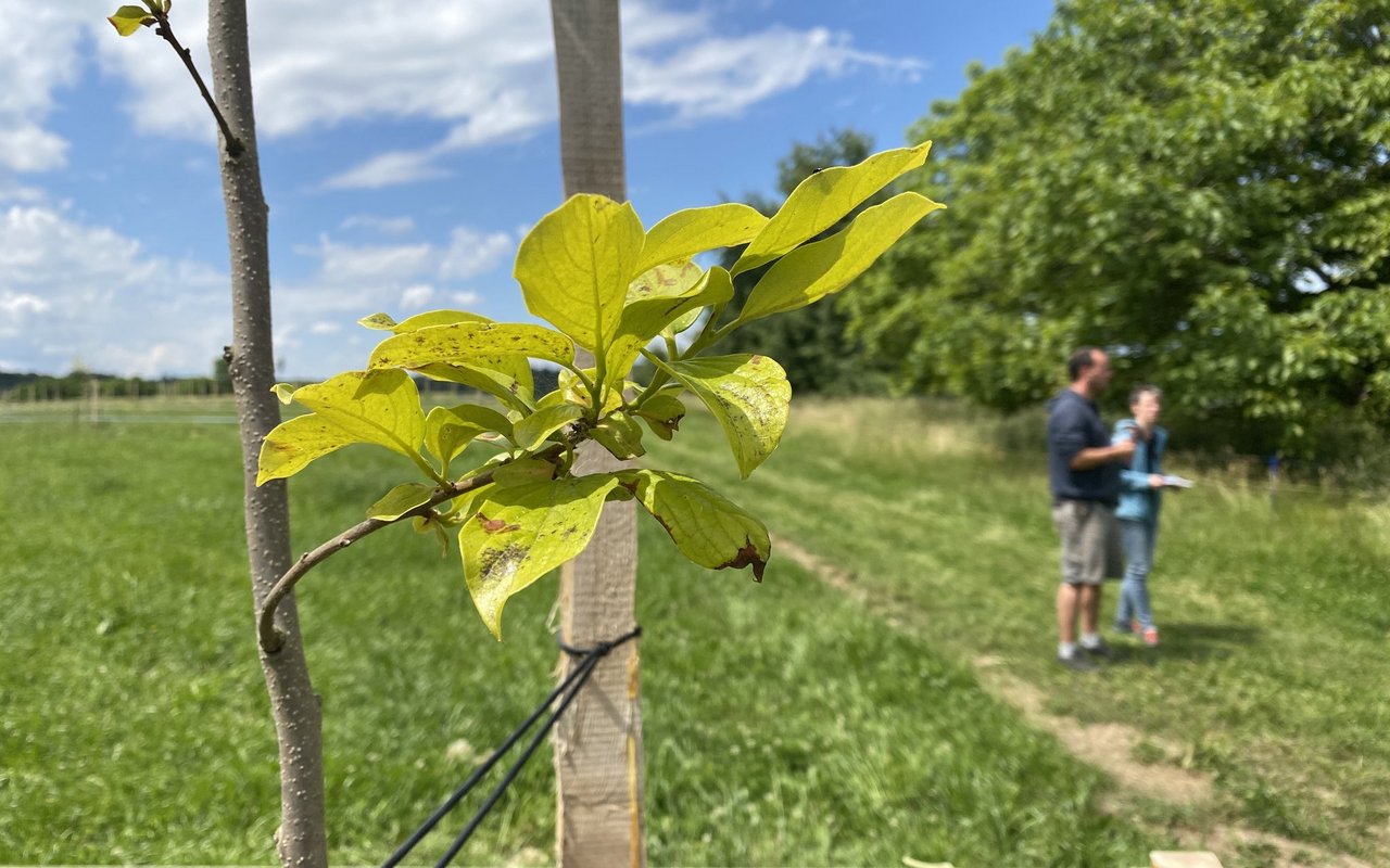 Die Pflanzung des Agroforsts erfolgte in Wallenbuch ausschliesslich von Hand. Dank dem Netzwerk der Solawi waren rund 50 freiwillige Helferinnen und Helfer beteiligt. Insgesamt sei es – die Arbeitszeit eingerechnet – eine Investition von rund 30'000 Franken gewesen, meint Valentin Birbaum. 25'000 konnte er über Beiträge finanzieren, sei es von Kanton und Gemeinde oder der Stiftungen Visio Permacultura und myclimate. Unterstützung gab es auch vom Fonds Landschaft Schweiz (FLS), der seinen «Fokus Agroforst 2022-23» auf dem Betrieb der Birbaums vor den Medien lancierte.