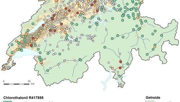 Nahezu alle Messstellen, an denen erhöhte Konzentrationen von Chlorothalonil-Metaboliten im Grundwasser gemessen wurden, haben demnach einen hohen Ackeranteil. «In Anbetracht der hohen Fragmentierung der Bodennutzung in den Einzugsgebieten und fehlender Detailstudien lässt sich der genaue Anteil der Herkunft der Belastungen aktuell jedoch nicht weiter aufschlüsseln», schliesst das Bafu.