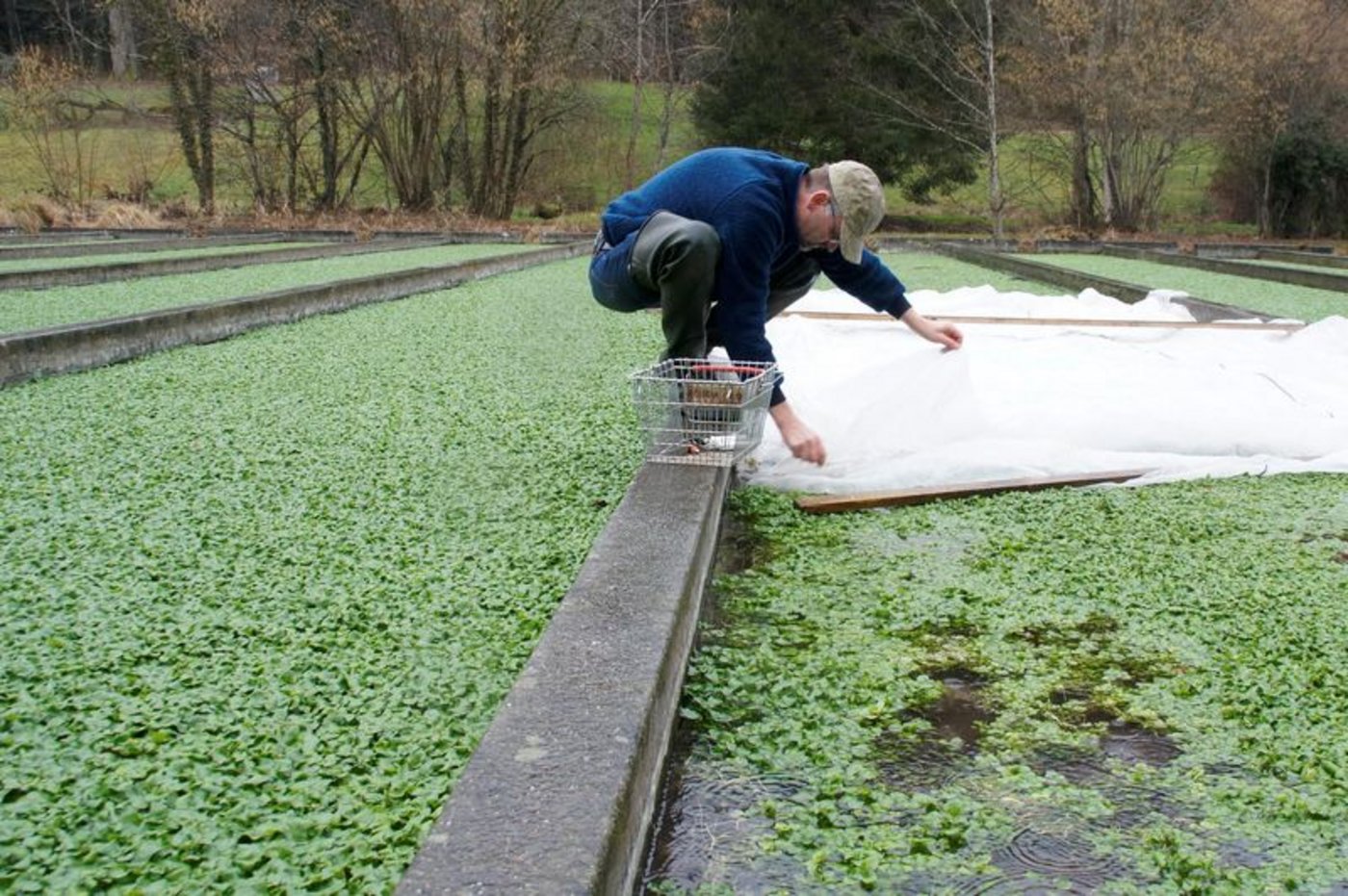 Im Winter decken Werner Stirnimann und sein Team die Brunnenkresse mit einem Netz ab. So frieren die oberen Teile der Pflanze nicht ab.