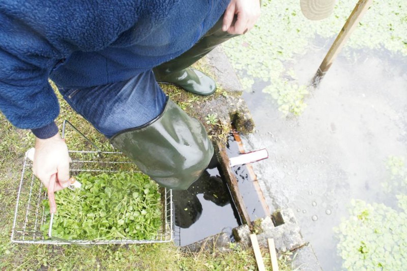 Die Ernte ist Handarbeit: die Brunnenkresse wird mit der Rasenschere oder der Sense abgeschnitten.