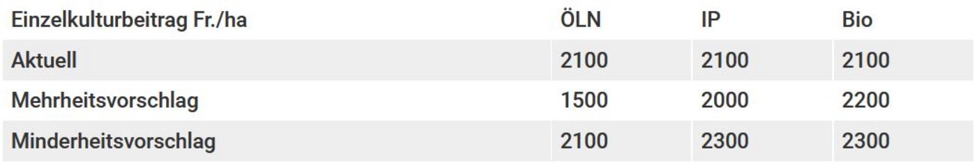 Der Verband fordert den Nationalrat dazu auf, den Minderheitsantrag zu unterstützen. Die Kommissionsminderheit will den aktuellen Betrag von 2100 Franken pro Hektare und Jahr beibehalten und für Bio- sowie IP-Zuckerrüben einen Zuschlag von 200 Franken einführen.