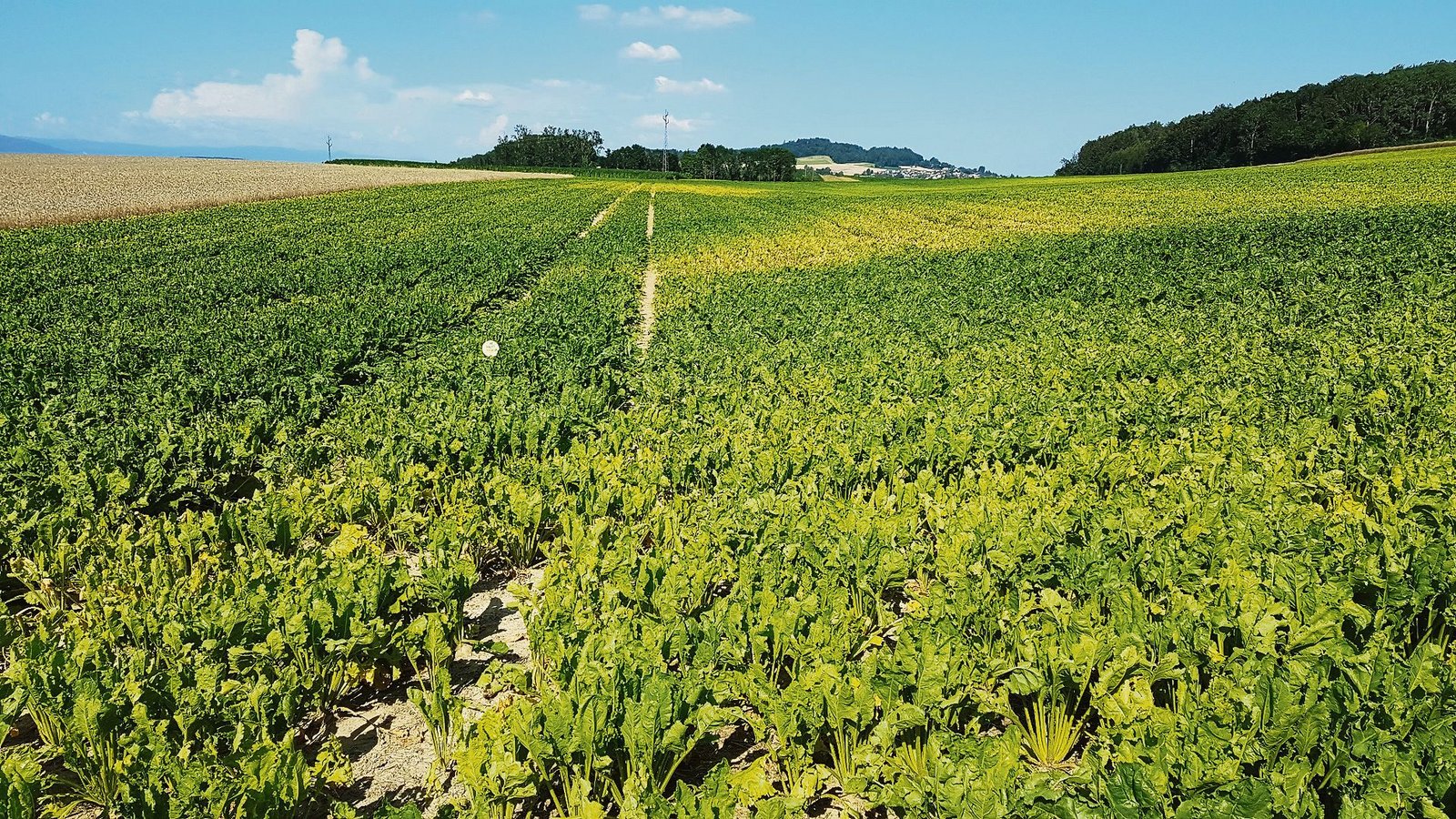 Nach den intensiven Niederschlägen der letzten Wochen sowie den zahlreichen Hagelereignissen präsentieren sich die Rüben derzeit unterschiedlich. Während sie sich auf leichten Standorden sehr gut entwickelt haben, sind auf Böden mit Staunässe grosse Ertragsverluste absehbar. Im Gegensatz zum letzten Jahr sind Blattkrankheiten bisher kein Thema. Ein möglicher Befall von Viröser Vergilbung muss bisher nur auf einzelnen unbehandelten Standorten beobachtet werden. Auch Cercospora und SBR (Syndrome Basses Richesses) konnten sich bisher nicht ausbreiten.