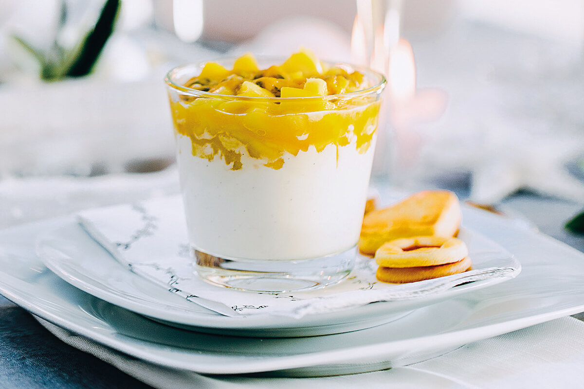 Griechischer Jogurt mit Passionsfrucht und Mango