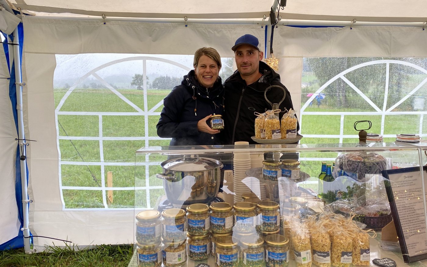 Familie Haslebacher grillierte Bratwürste mit Fleisch von den eigenen Schweinen. Familie Haldemann stellte das neuste Hofprodukte vor, die «Stärne Suppe» mit hausgemachten Teigwaren. Und beim Stand von Aline Gerber und Christoph Messerli gab Burger von den eigenen Poulets.
